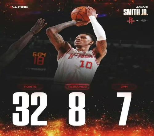火箭三人20+轻取鹈鹕杜兰特里程碑小史密斯32+8亚当斯伤退