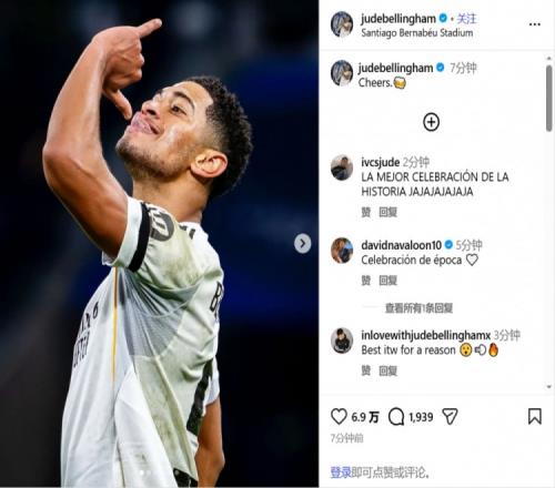贝林厄姆在社交媒体上晒出了自己进球后的“喝酒”庆祝动作,并配文写道:“干杯